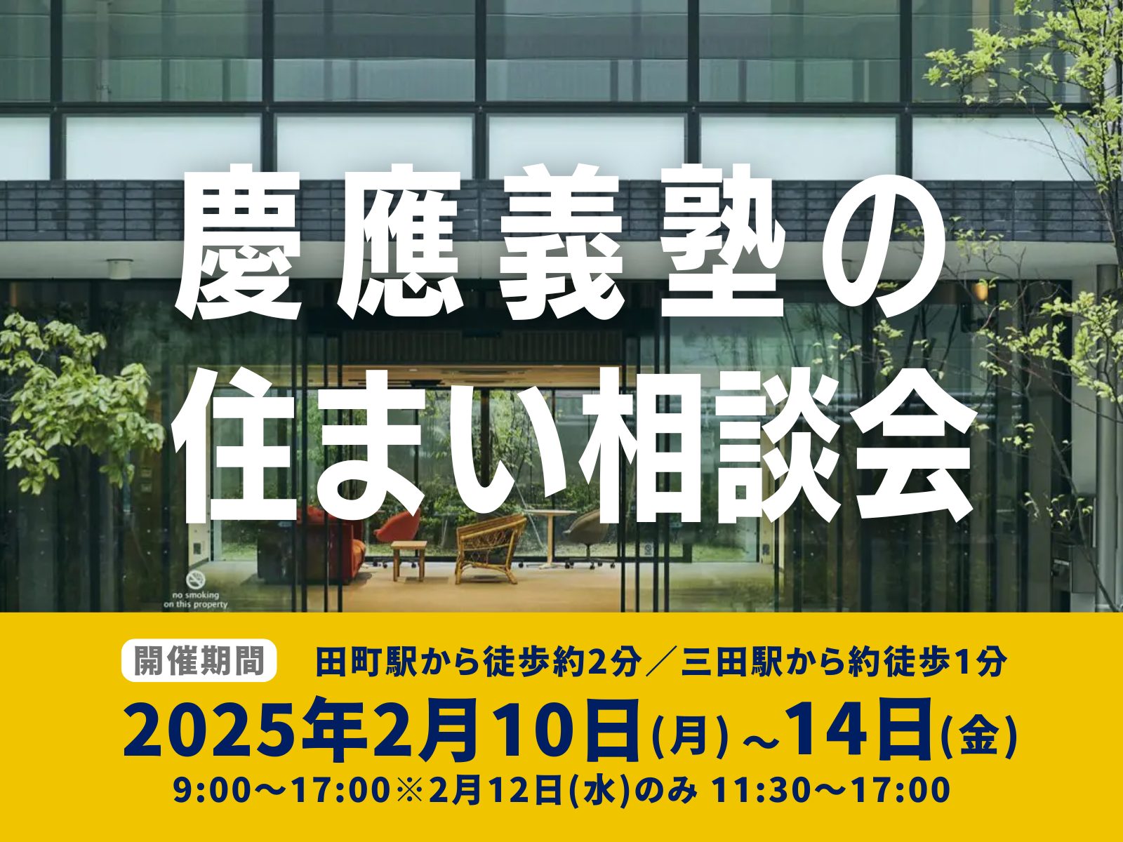 慶應義塾大学の一般選抜期間中 2025年2月10日(月)~2月14日(金) に「慶應義塾の住まい相談会」 を三田キャンパス近くの特設会場にて開催いたします。予約不要・参加費無料です。資料だけのお受け取りも可能ですので、お気軽にお立ち寄りください!